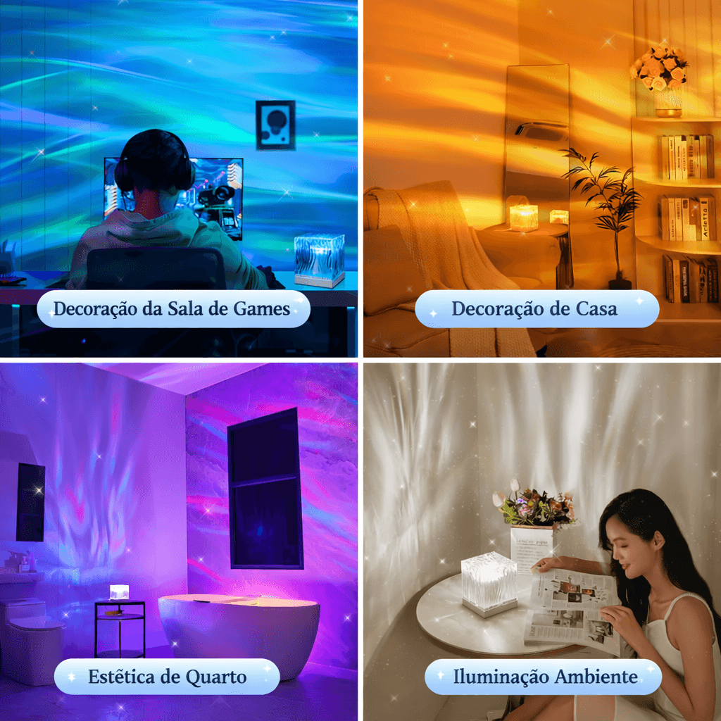 A StarLight Ocean chegou para mudar isso. Com tecnologia avançada de projeção, ela converte qualquer ambiente comum em uma experiência visual imersiva. Seja o movimento hipnotizante das ondas do mar ou o brilho mágico da Aurora Boreal, você controla o clima do seu espaço com um simples toque.
